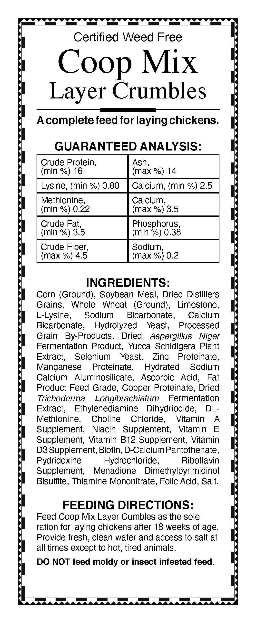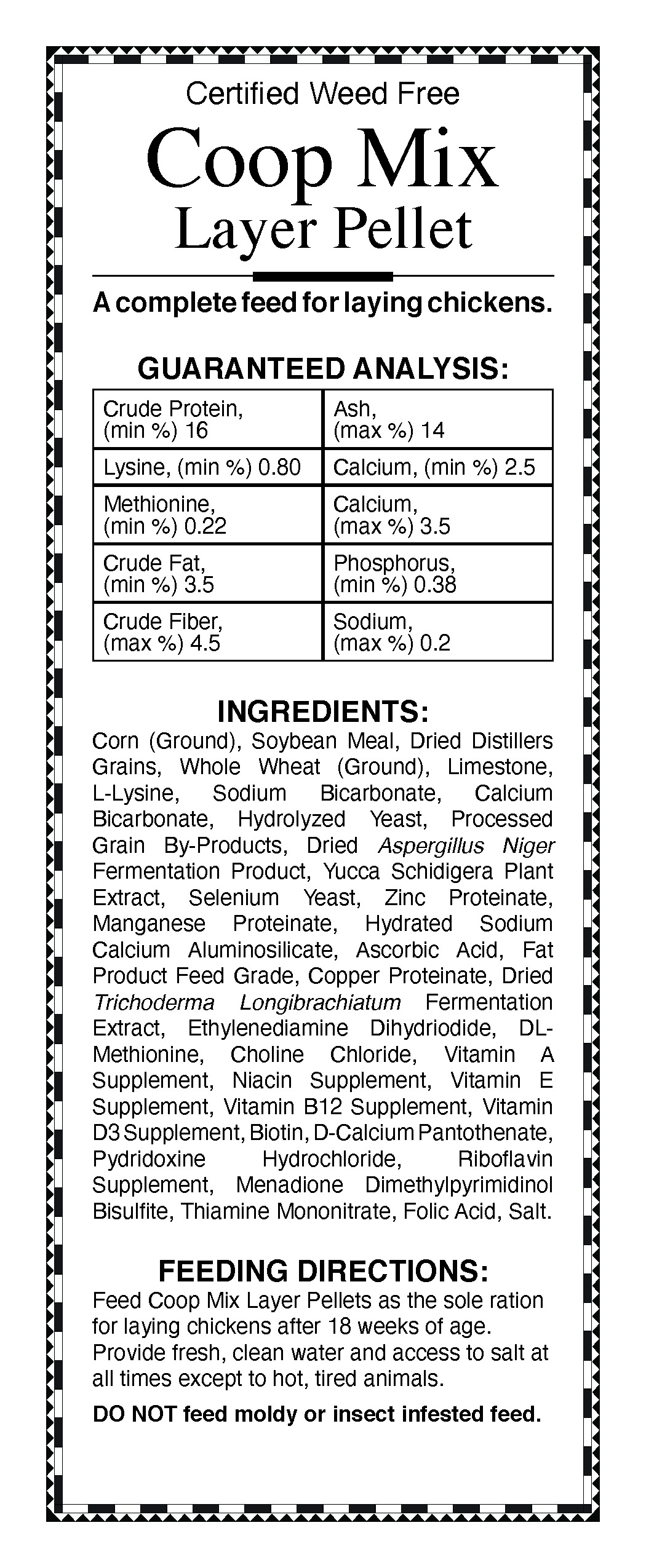 Coop Mix Layer Pellet is produced in a medication free facility.
